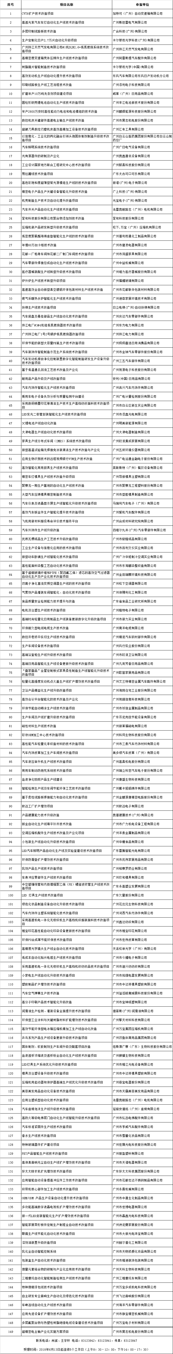 关于2018年广州市(shì)“中国制造2025”产业发展資(zī)金技术改造专题工业企业技术改造及产业化(huà)(huà)方向项目的(de)公示