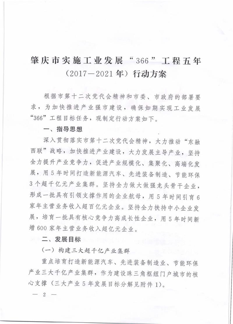 关于印发《肇庆市(shì)实施工业发展“366”工程五年(2017-2021年)行(xíng)动方案》的(de)通知