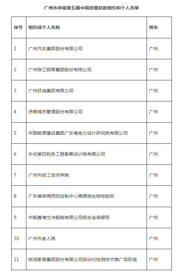 附件(jiàn):广州市(shì)申報(bào)第五届中国质量奖的(de)组织和個(gè)人名单