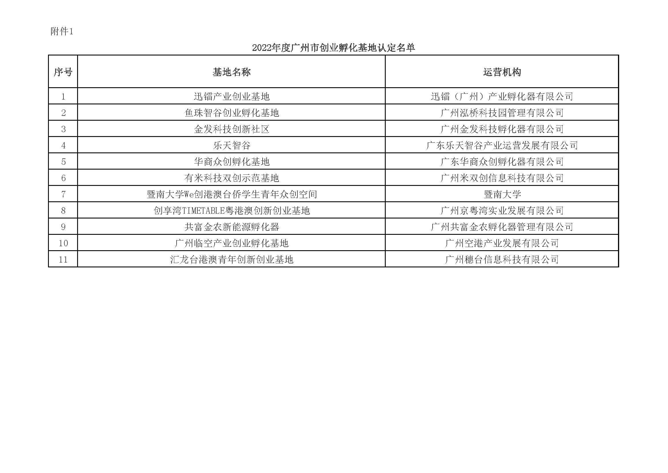 1.2022年度广州市(shì)创业孵化(huà)(huà)基地(dì)认定名单