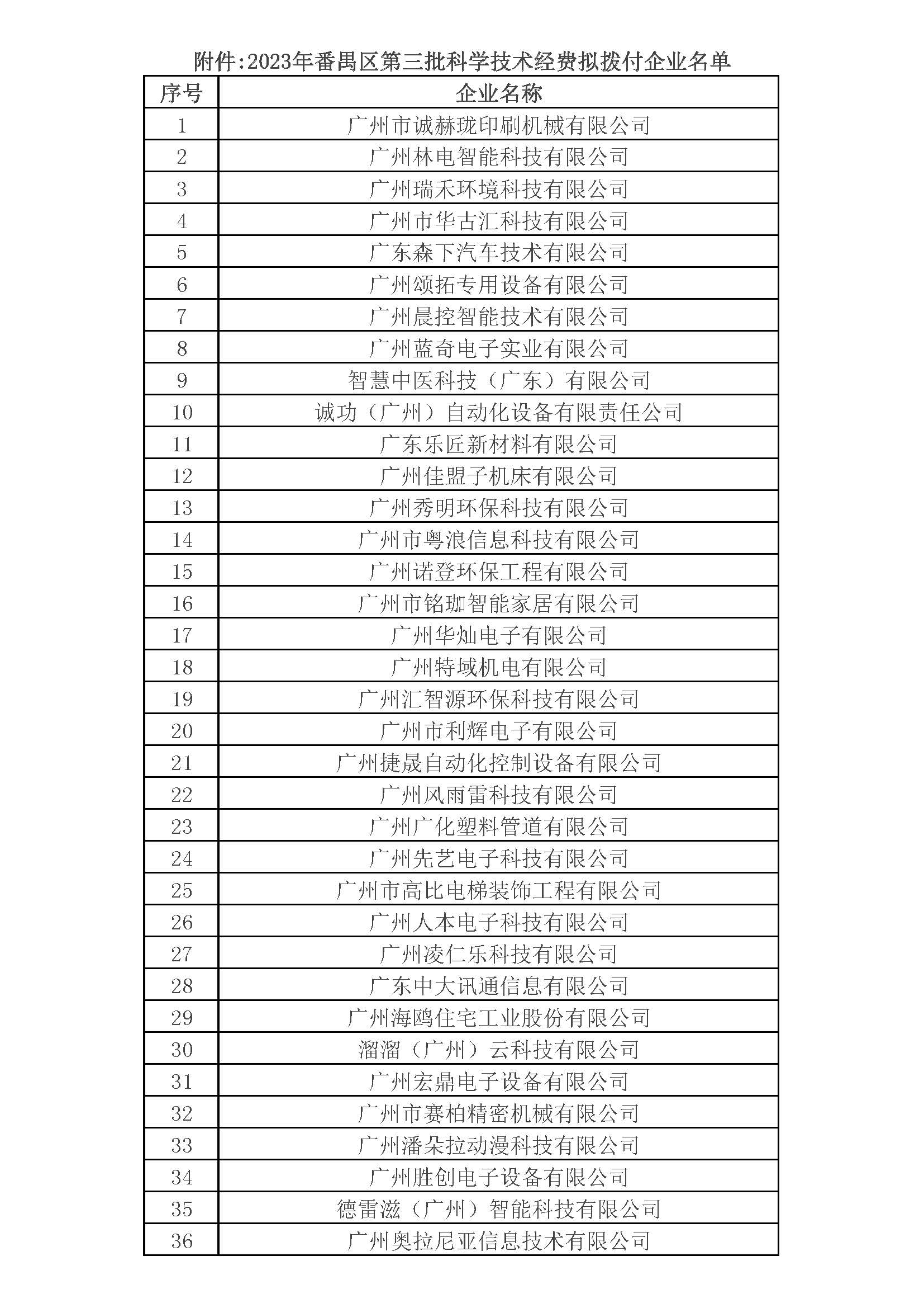 附件(jiàn):2023年番禺區(qū)第三批科(kē)學(xué)技术经费拟拨付企业名单