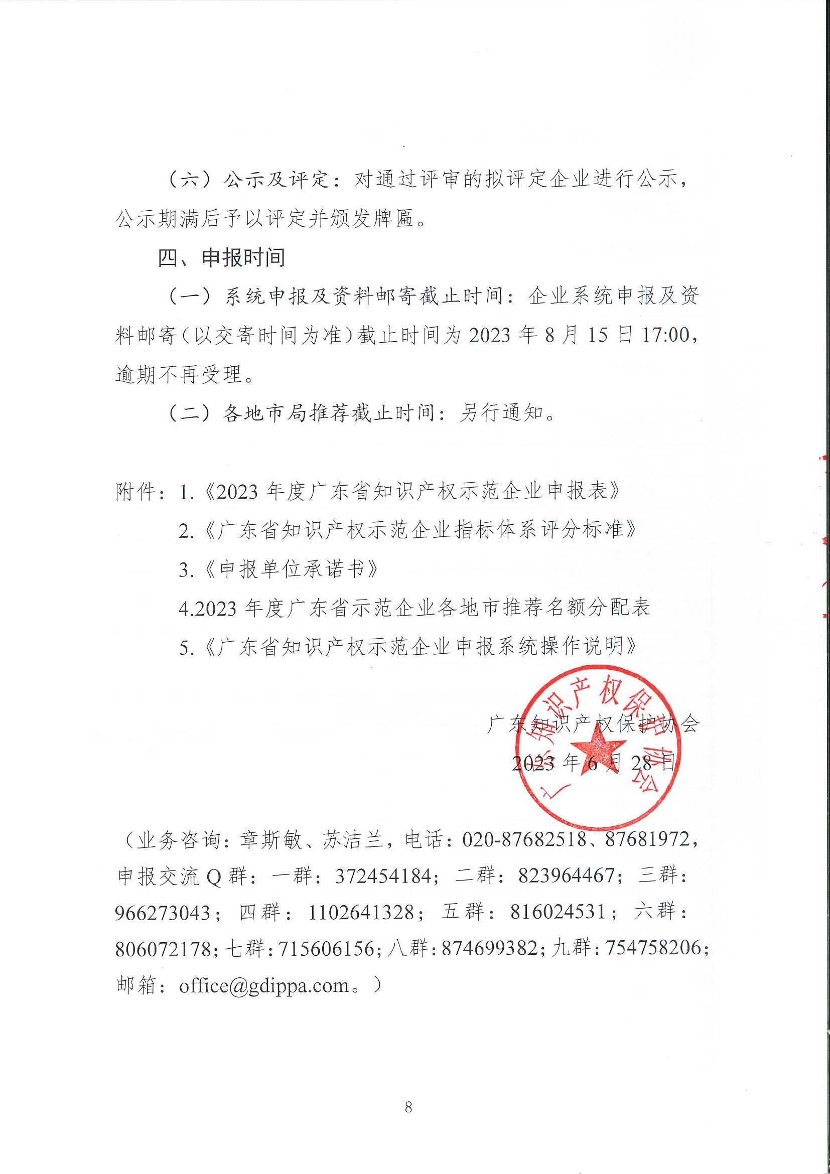 通知正文:粤知保协发字〔2023〕17号-关于组织开展“2023年度广东省知识产权示范企业”申報(bào)工作的(de)通知