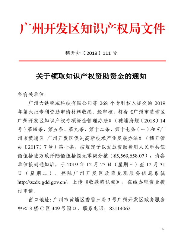 黄埔區(qū)关于领取知识产权資(zī)助資(zī)金的(de)通知