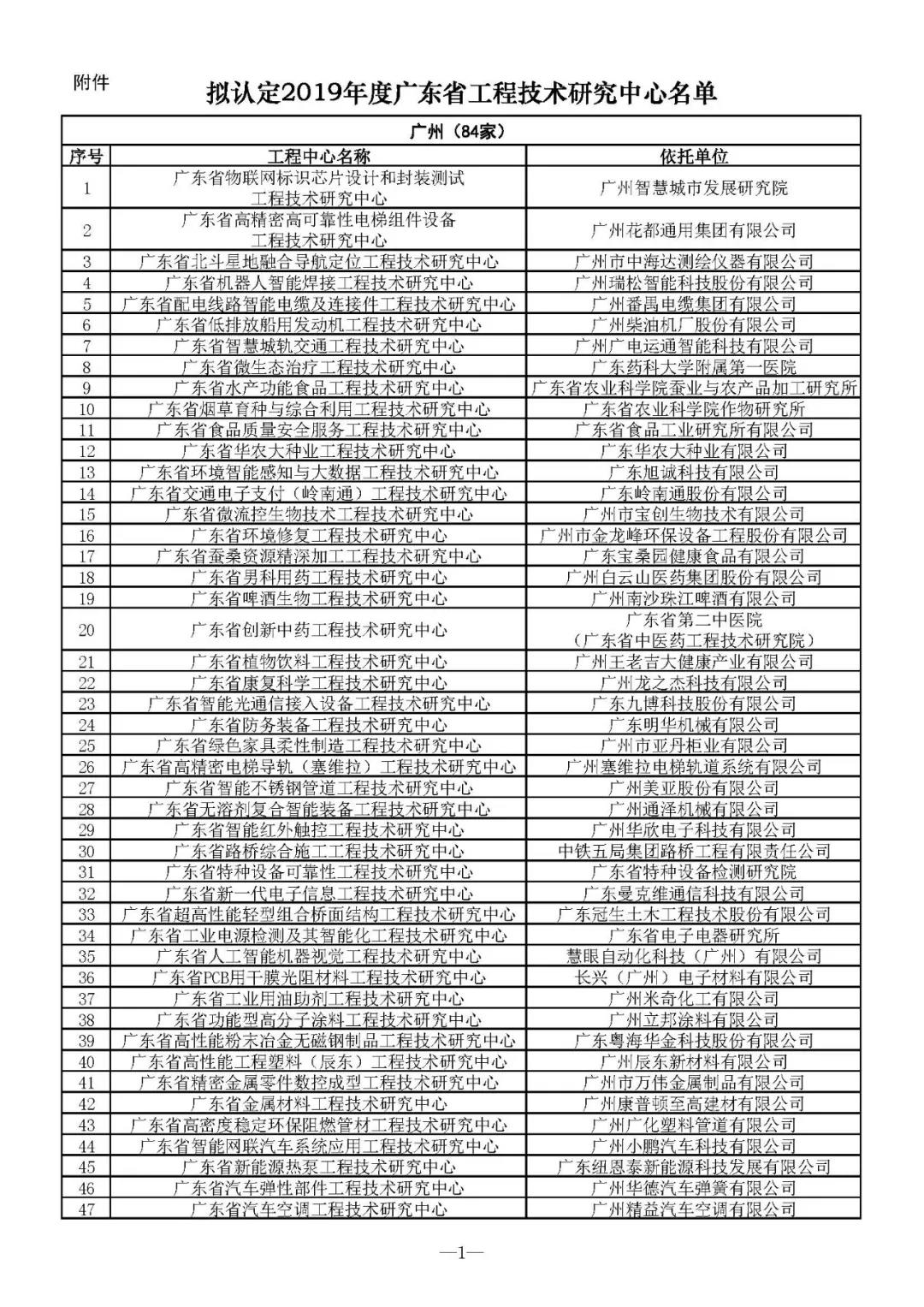 附件(jiàn):2019年度广东省工程技术研究中心拟认定名单